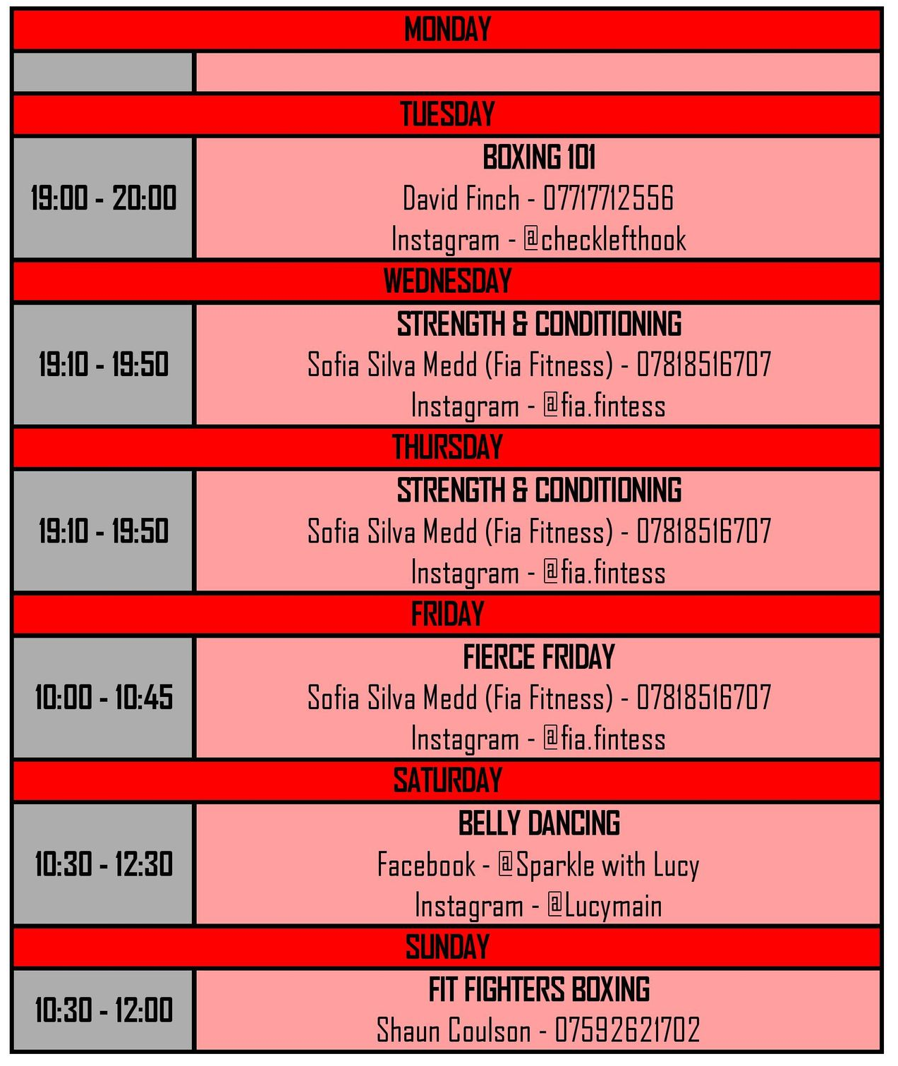 If you require any information regarding a class then please ring the relevant instructor number on the class timetable. All require booking so please get in touch with the class instructor directly before attending a class.